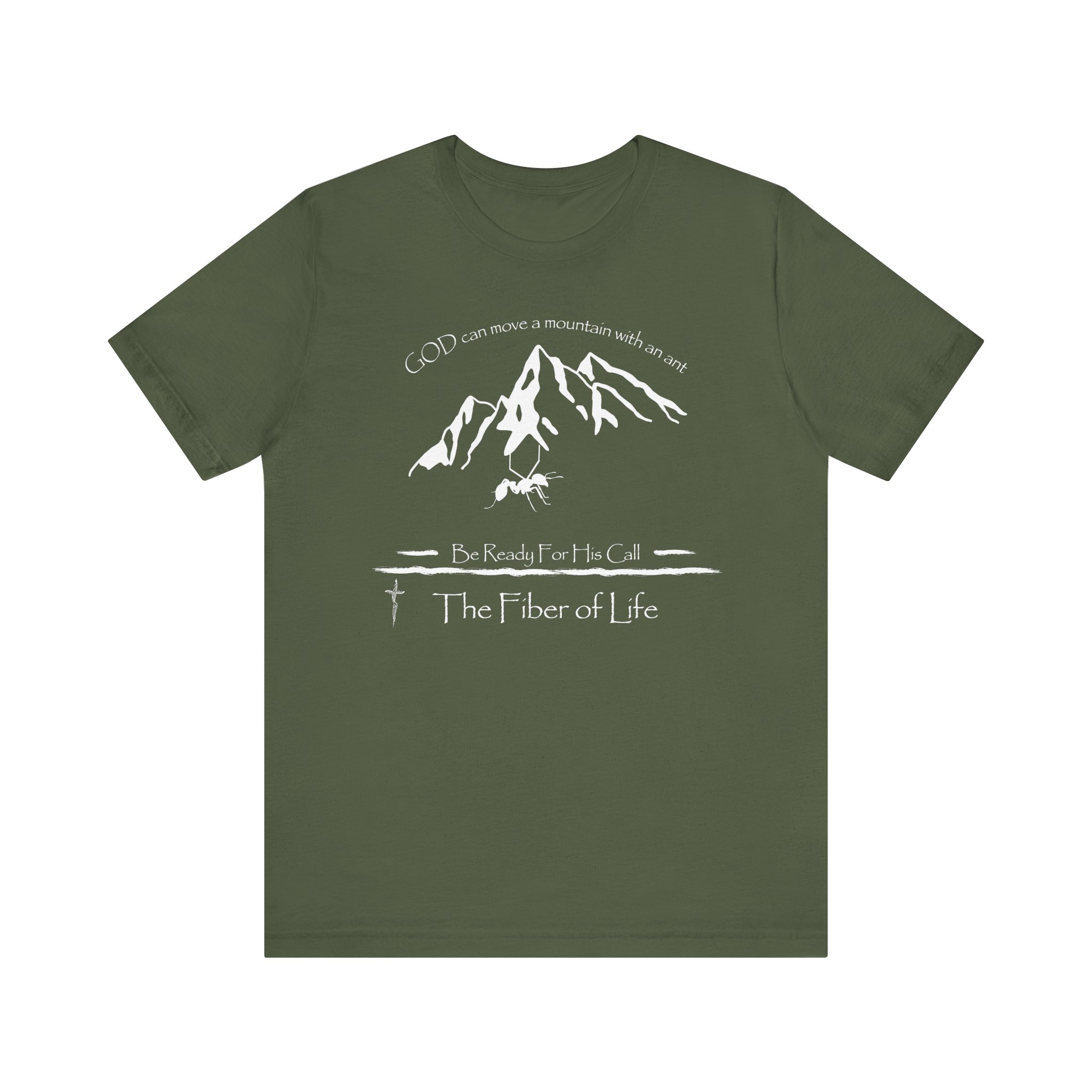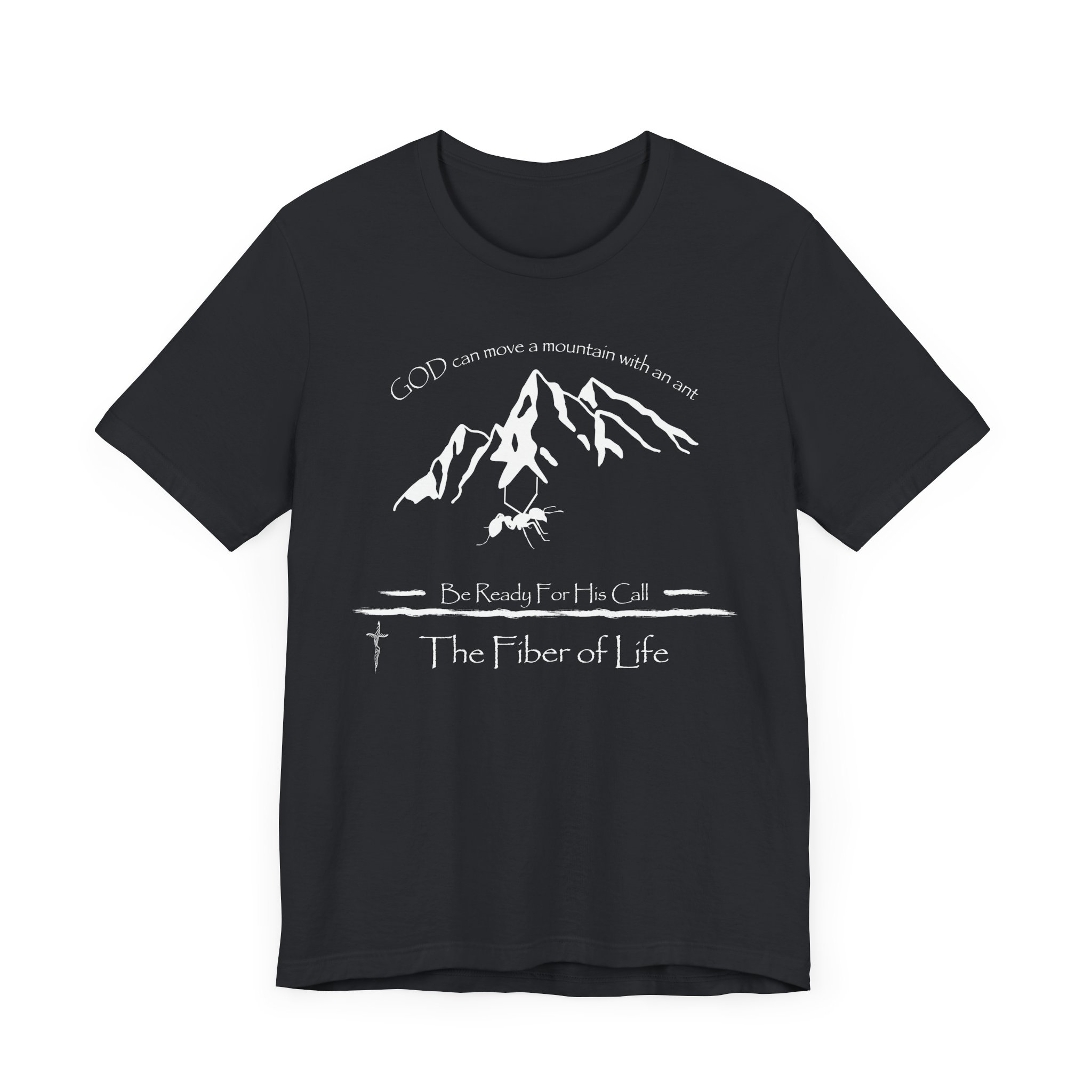 A unique Tee featuring an image of an ant holding a mountain, with a message about faith and readiness for divine calls. This Tee gives off a motivational and inspirational vibe, making it a perfect addition to the wardrobe of those seeking spiritual encouragement. Ideal for individuals celebrating religious holidays or looking for a reminder of faith in their everyday life.